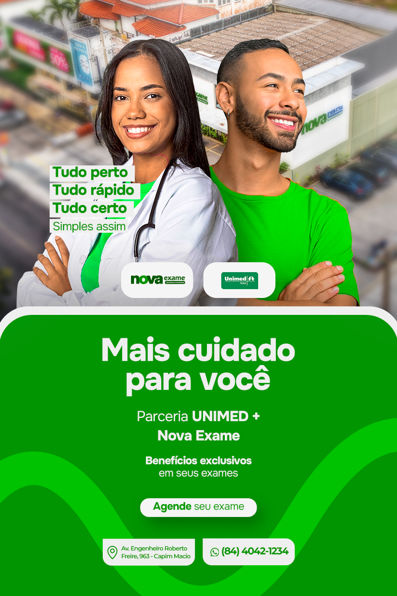 A Nova Exame é fruto dessa sociedade e desse compromisso com a excelência. Localizada na Avenida Engenheiro Roberto Freire, a clínica nasce com a missão de cuidar das pessoas, oferecendo exames de diagnóstico por imagem e laboratoriais com precisão e tecnologia de ponta.